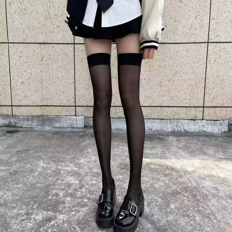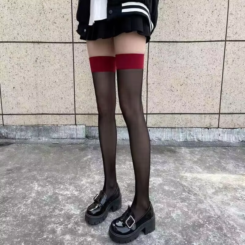 Sexy Red Edge New Over The Knee Long Socks Gothic Lace Transparent Thigh High Stockings Women Punk JK Thin Silk Solid Hosiery