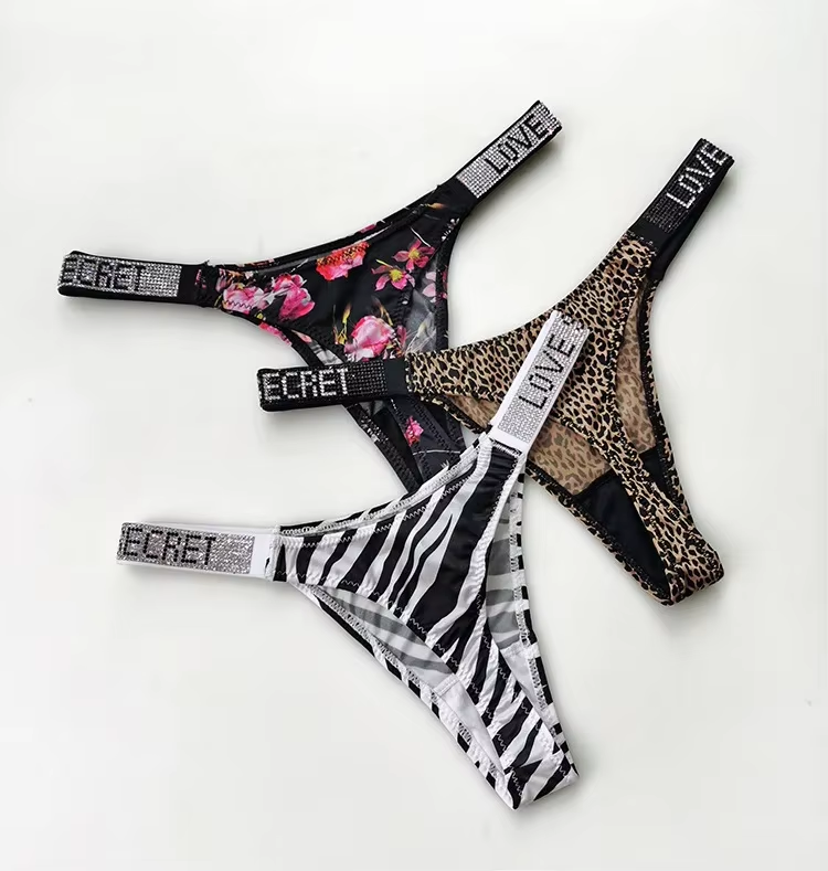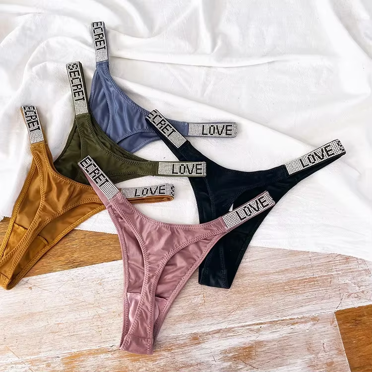 Shiny Rhinestone Thong Women Low Waist Panties Femme Sexy Underwear Ladies Briefs Lingere Panty Underware Lingerie Thongs T Pant