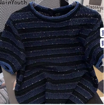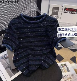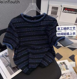 Shirts for Women Knit Tshirts 2025 Ropa Mujer Short Sleeve O-neck Striped T Shirts Y2k Tops Chic Casual Summer Tees Crop Top