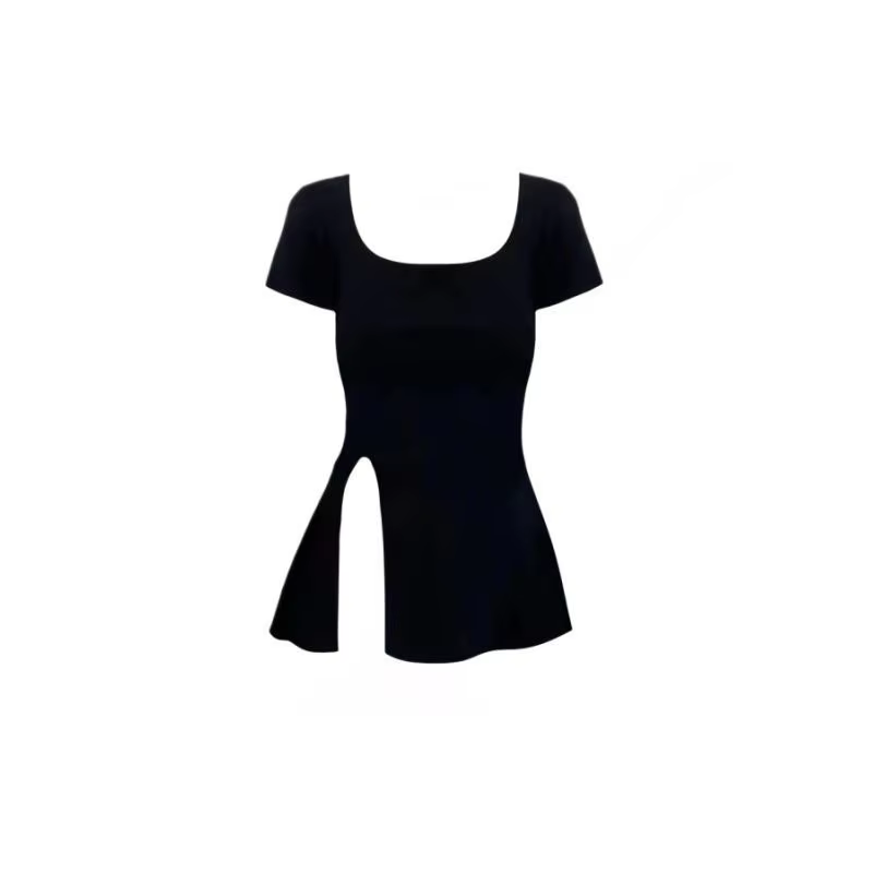 Split Crop Top Women 2025 Summer Solid Y2k T-shirt Korean Style Short Sleeve Tees Tshirts Femme Fashion Clothing Female 2024 New