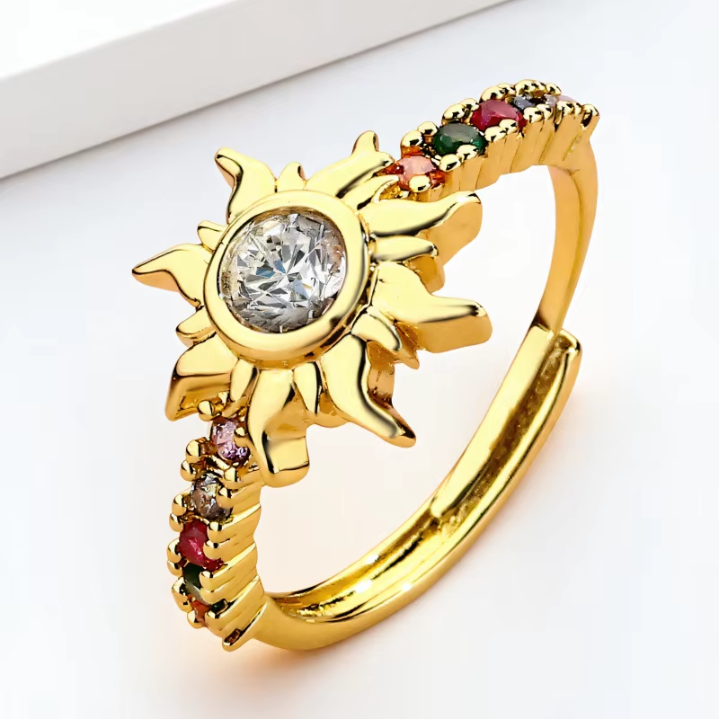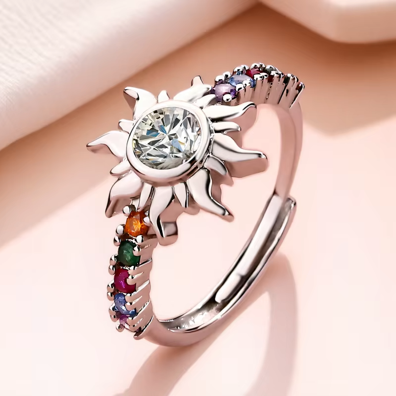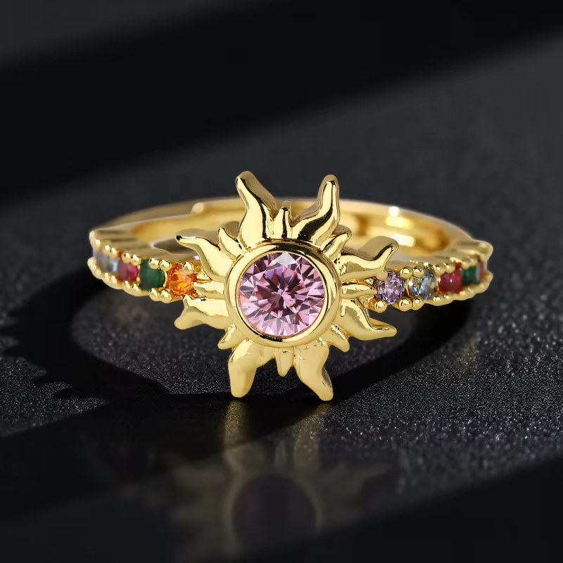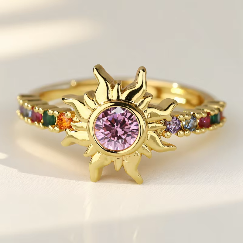 Stylish Pink White Sun Rings For Women Antique Gold Silver Color Female Zircon Adjustable Wedding Bands Colorful Jewelry