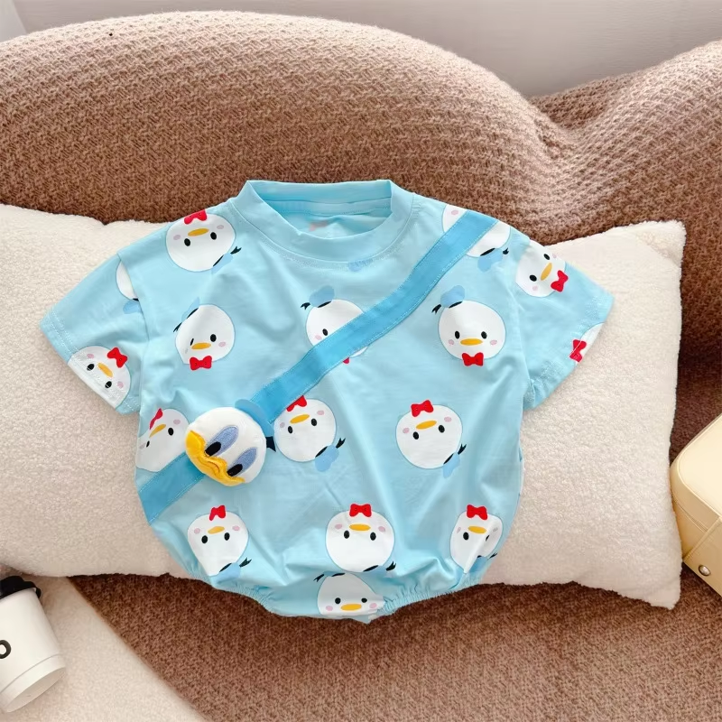 Summer Infant and Toddler Disney Cartoon 3pcs Sets O-neck Short Sleeve Bodysuit+Bucket Hat+Cute Socks Baby Boy Girl Clothes D625
