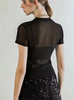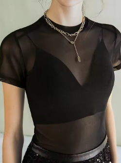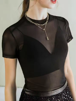 Summer Sheath Mesh T Shirts Women's Summer Transparent High Stretchy Black T shirt Base Tees Girl Basic T-Shirt