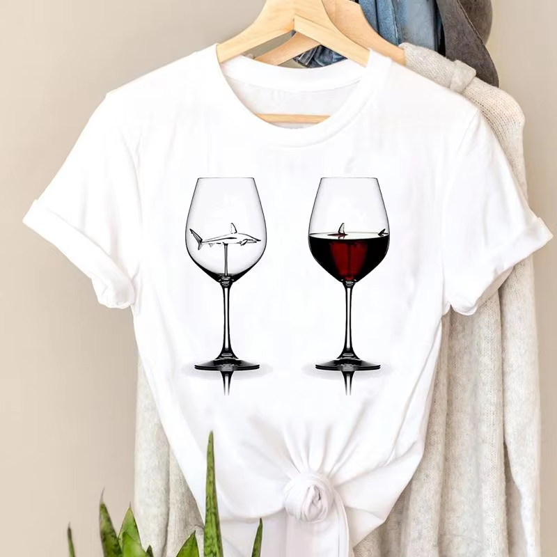 T-shirts Tee Fashion Trend Short Sleeve Women Ladies Tshirt Top Wine Style Trend Printing Lady Print Travel Graphic T-Shirt