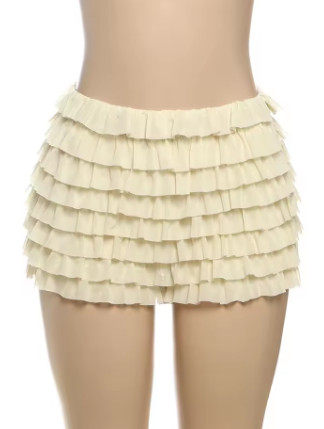 Weird Puss Multi-Layered Ruffles Shorts Women Y2K Chic Summer Trend Mesh Sweet Daily Skinny Basic Wild Street Midnight Bottoms