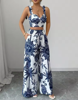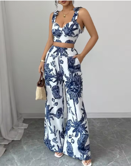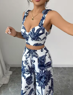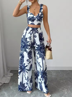 Woman Lady Sets Blouse Shirred Backless Knot Plants Boho Short Sets New Matching Sets The Price Of