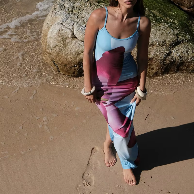 Women Floral Slip Long Dress Spaghetti Strap Flower Print Cami Maxi Dress Y2k Backless Bodycon Boho Sundress