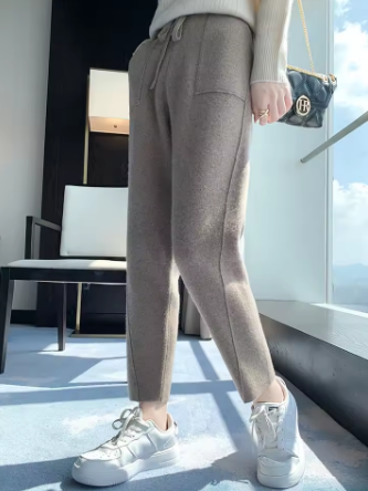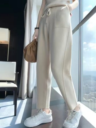 Women's Wool Pencil Pants 100% Merino Wool Warm Trousers Spring Autumn Winter High-Quality Elastic Waist Drawstring Pants