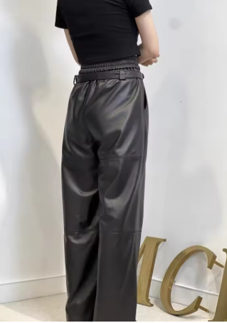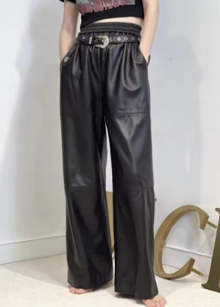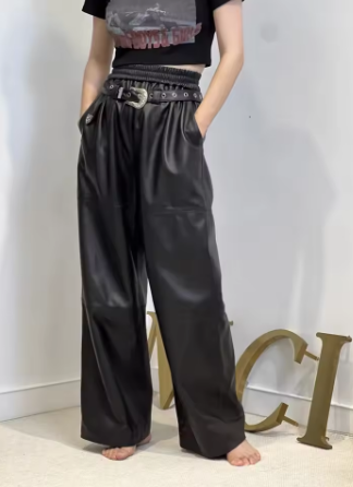 Y2K Cargo Pants Women High Waist Baggy Pants 2024 New Korean Fashion Wide Leg Genuine Leather Trousers Streetwear Loose Style