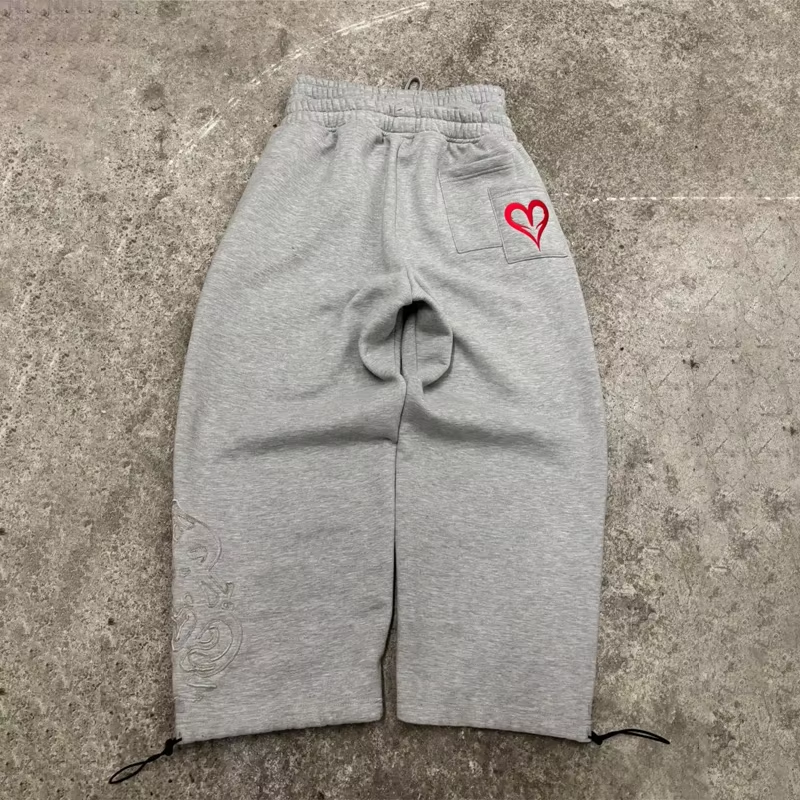 Y2K Double Waist Jogging Pants Poker Embroidery Pattern Sagging Pants Men Women Goth Hip Hop Streetwear Unisex Baggy Sweatpants