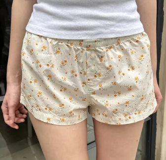 Y2K Kawaii Women Lounge Shorts Cute Boyshorts Panties for Women Floral Printing Front Button Sleepwear Pj Bottoms for Summer