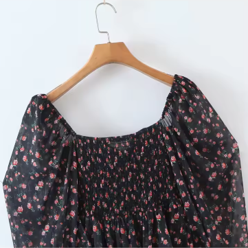 2022 Fashion Women Vintage Floral Print Chiffon Dress Sexy Semi-Sheer Long Sleeve Layered