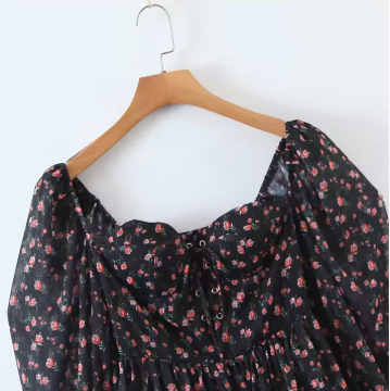 2022 Fashion Women Vintage Floral Print Chiffon Dress