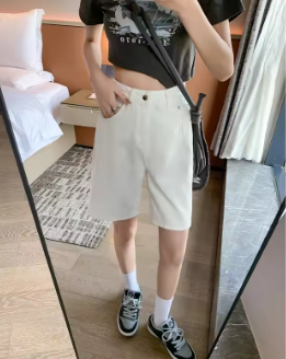 ZOENOVA Korean Street Fashion Cool Girl Simple White Denim Shorts Summer High Waist Loose Versatile Straight Five Quarter Jeans