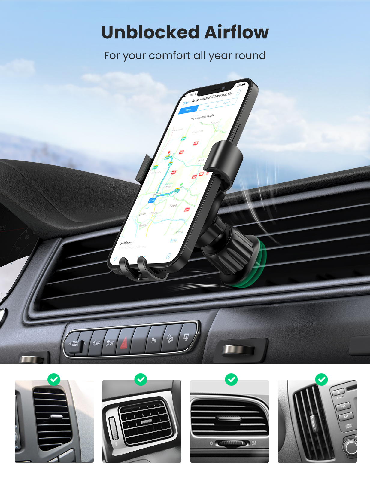 UGREEN Car Phone Holder Aircon Vent Holder Car Mout