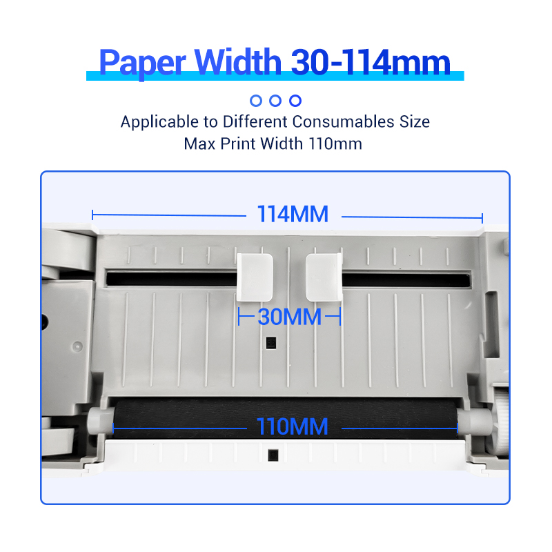 3. Paper Width 30-114mm, Printing Width 110mm, Applicable to Different Consumables Size