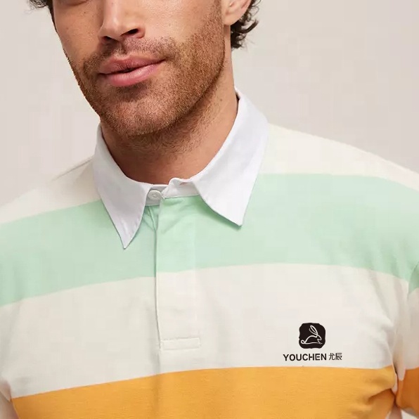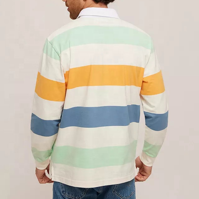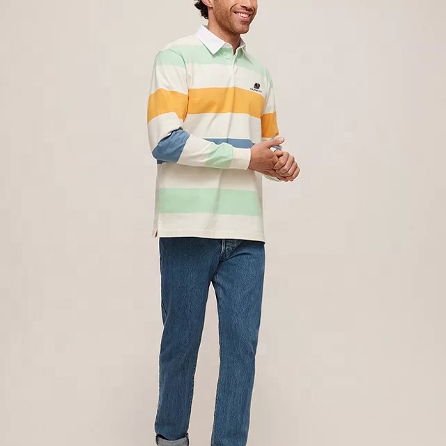 Product Name | Men 100% Cotton Striped Long Sleeves Rugby Polo Shirt for Men Custom Embroidered Logo | ||||||