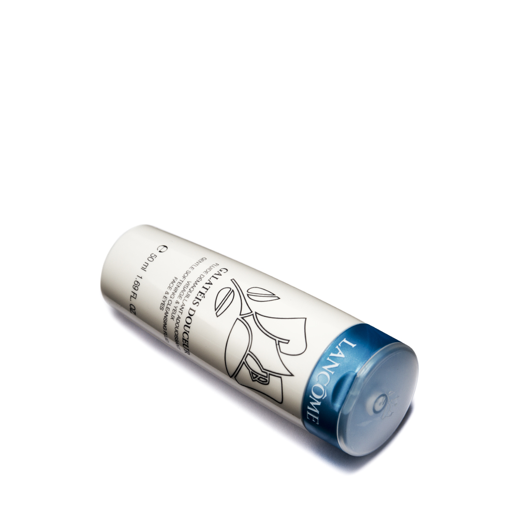 Lancôme Galatéis Douceur - Gentle Cleanser For Face And Eyes (50ml) Its light and milky formula can apply evenly on face, creates a clean base in the morning, and in the evening it removes makeup and any other impurities from the day. Enriched with papaya and pineapple extract, can penetrate the pores, thoroughly remove make-up and dirt, metabolize the stratum corneum, and leave skin feeling fresh and clean.Product Features:•The formula enriched with papaya and pineapple extract, effective cleansing while moisturizing the skin.•Gentle nature, liquid and silky texture. Take an appropriate amount to massage your face then wipe clean or rinse with water, the usage is easy and convenience. •Will not cause dryness after used, leaves skin supple and refreshing, also promotes the absorption of subsequent skin care products.