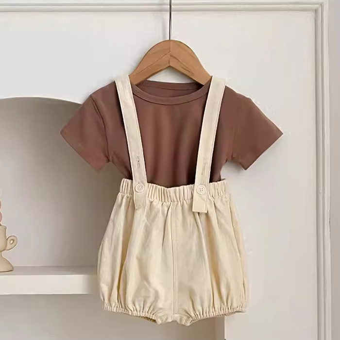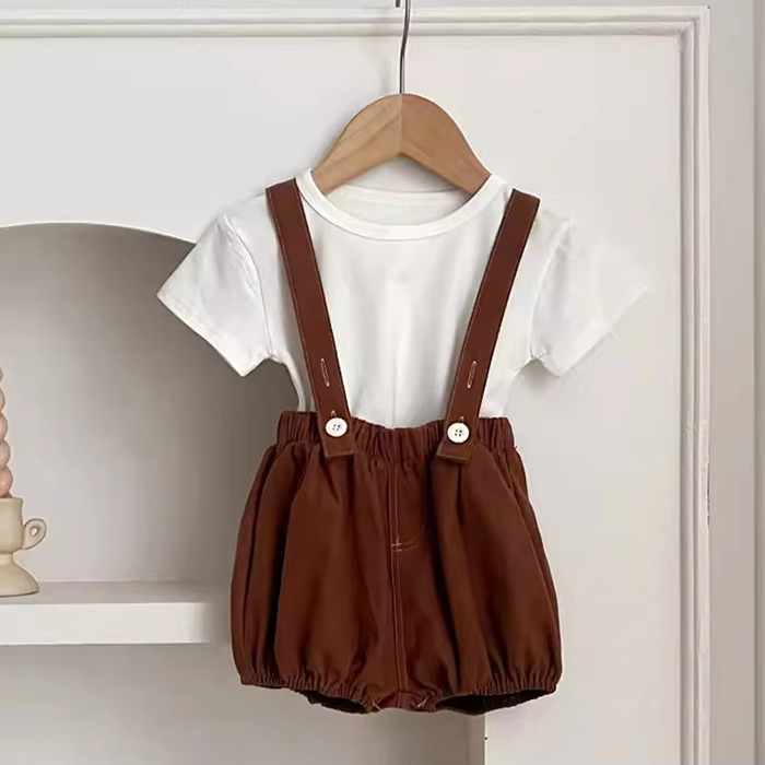 2024 New Summer Children Clothes Suit Short Sleeved Cotton T-shirt Sleeveless Jumpsuit Newborn Baby Girls Clothing Set