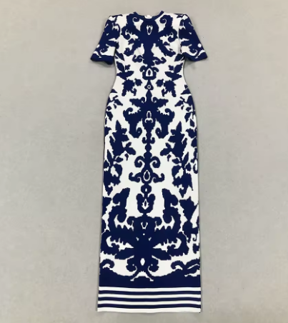 2024 Spring/Summer New Sexy Round Neck Short Sleeve Printed Bandage Dress Women's Elegant Celebrity Party Evening Dres