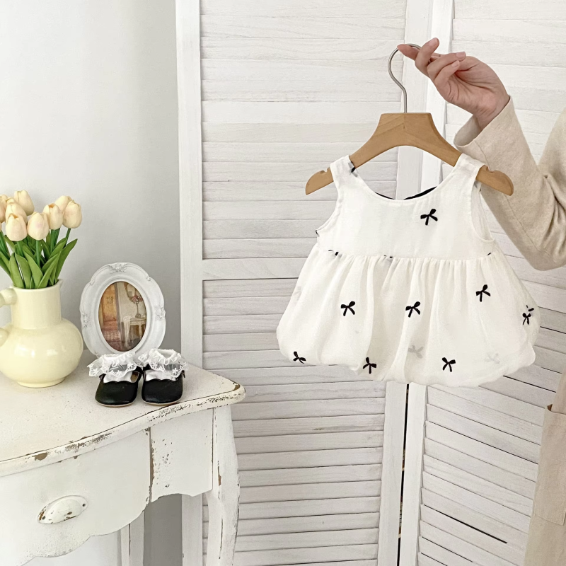 2025 New Western Style Girls' Summer Two Piece Set Super Fairy Bow Vest Top Versatile Flower Bud Shorts Set