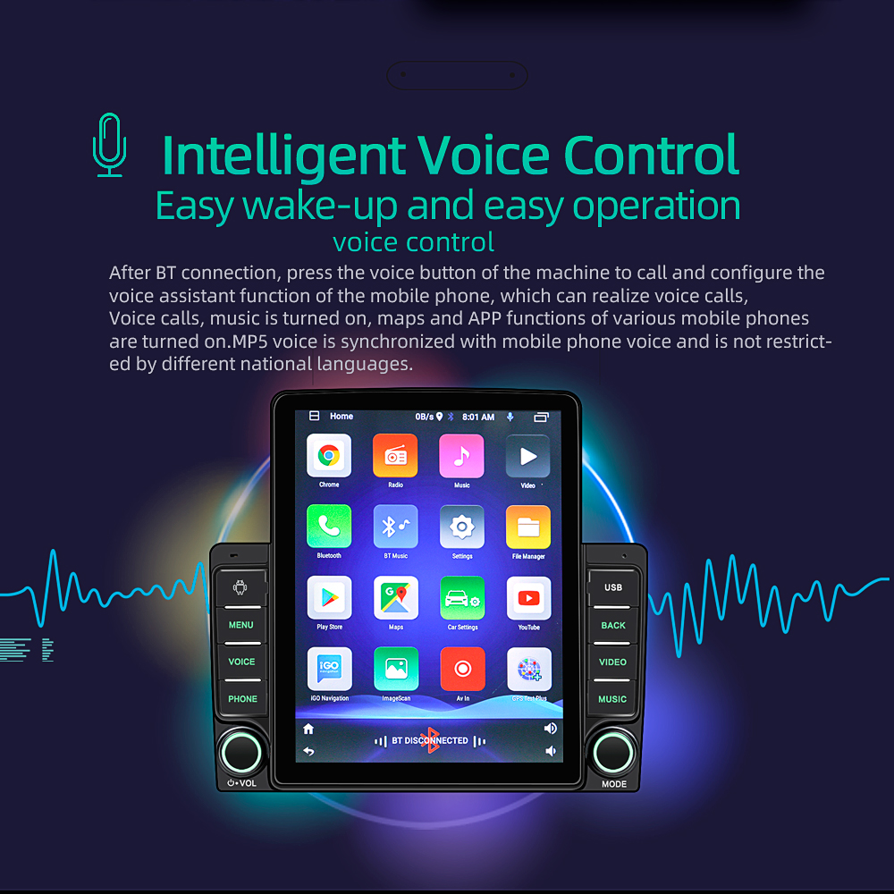EKLEVA 2 Din 9.5 Inch Car Radio Player Android 11 RAM+ROM 1GB + 16GB Vertical Screen IPS high definition screen Quad-Core Bluetooth Hands-free 9580A