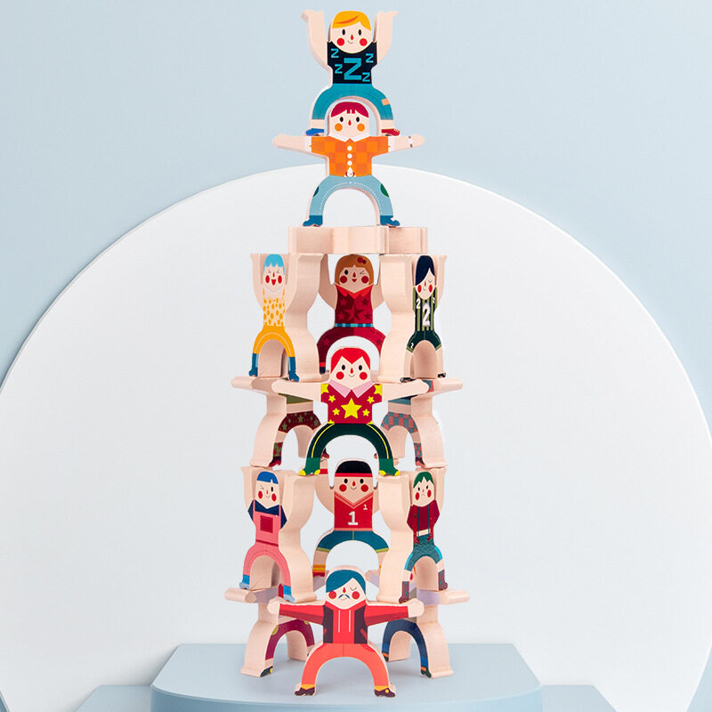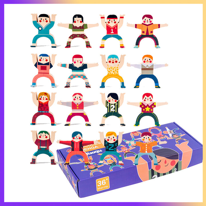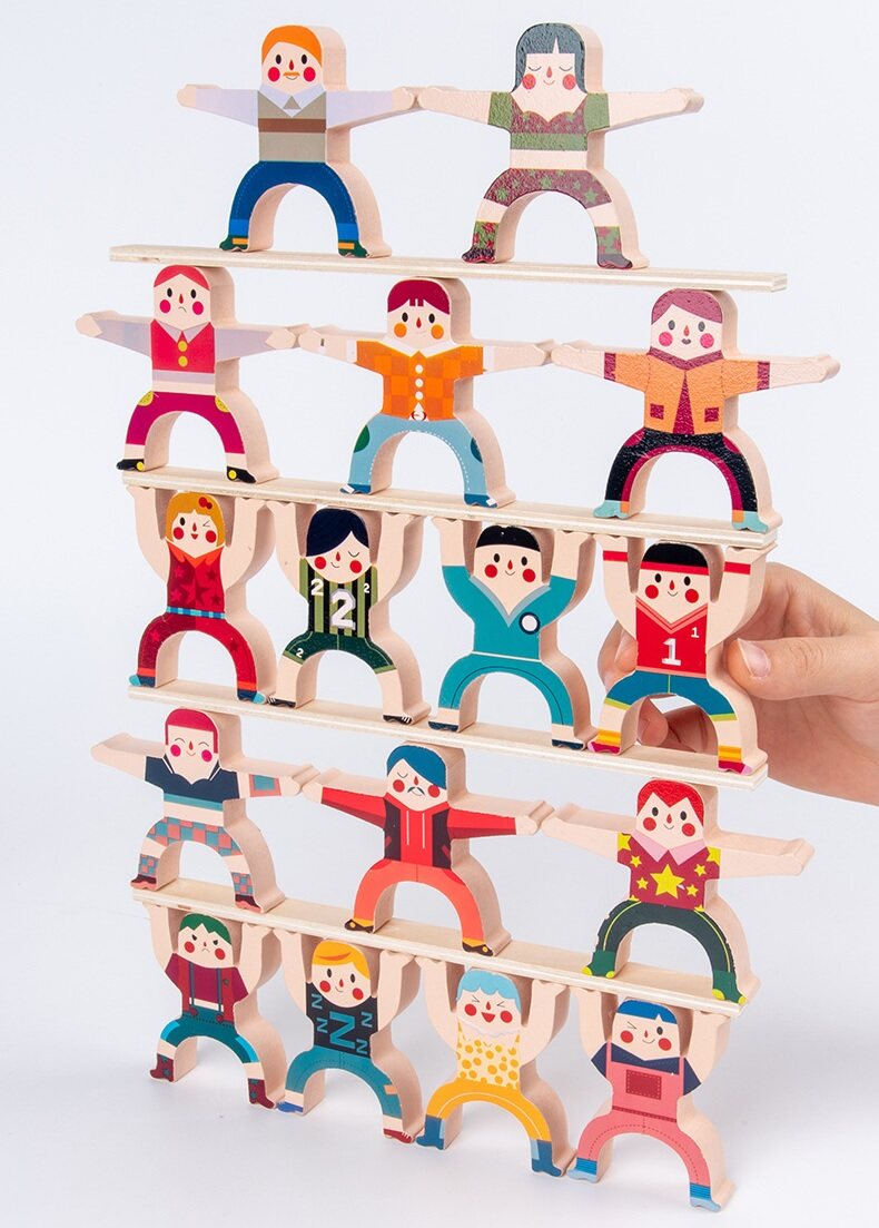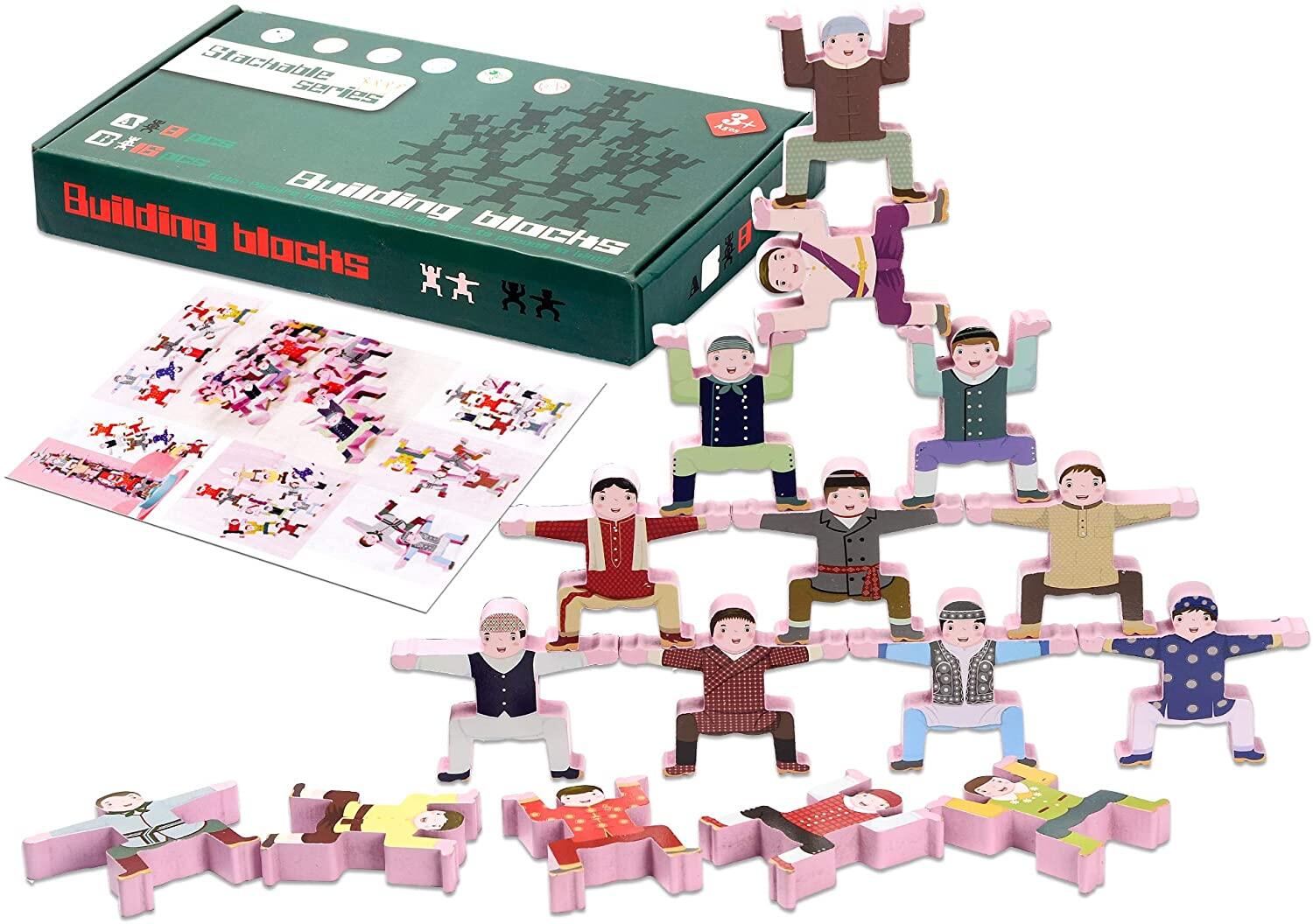 Wooden Stacking Games | Fun Balancing Blocks Acrobatic Troupe | Puzzle Board Game for Kids | Educational Toys Gift for Boys and Girls (16 Pieces ) | Building Block