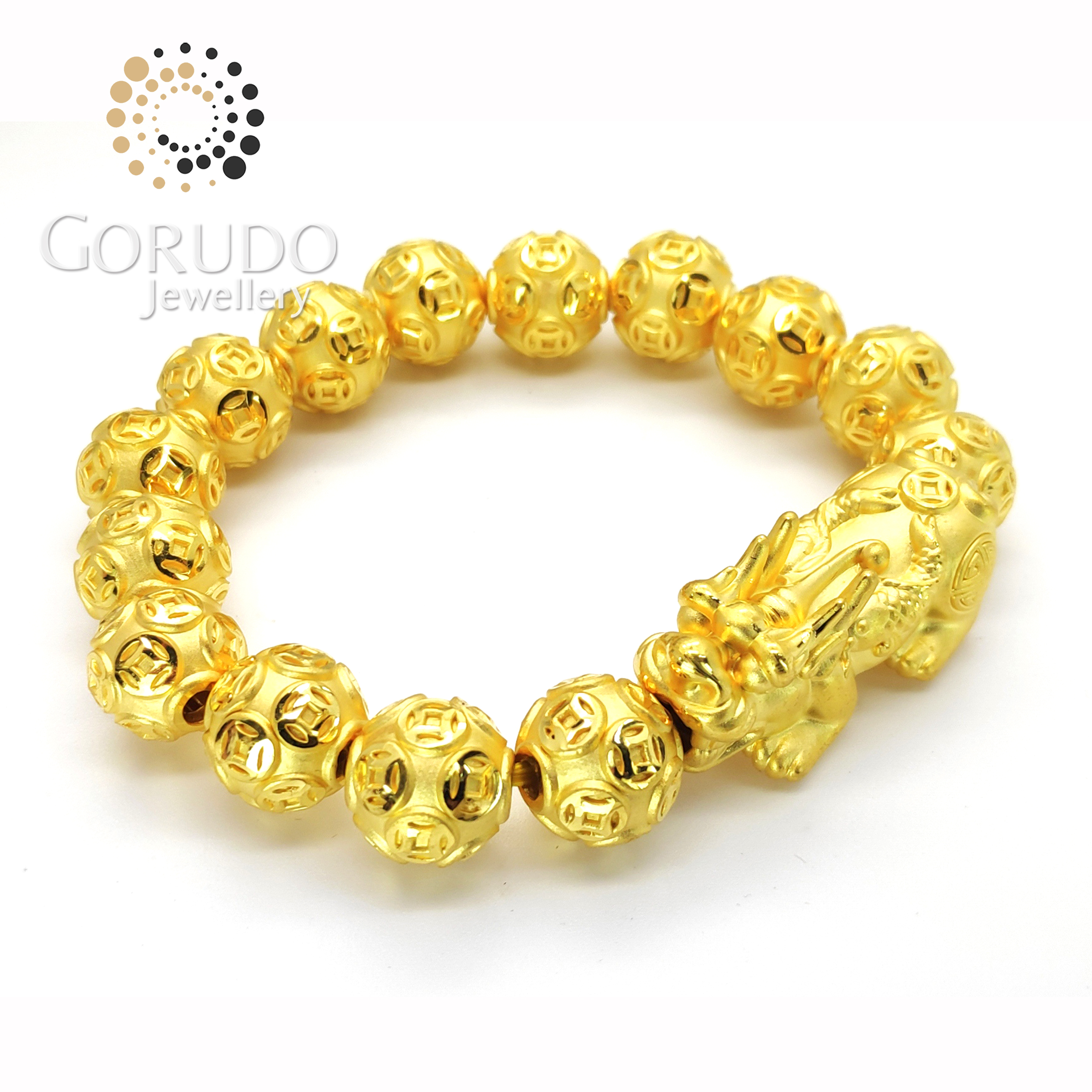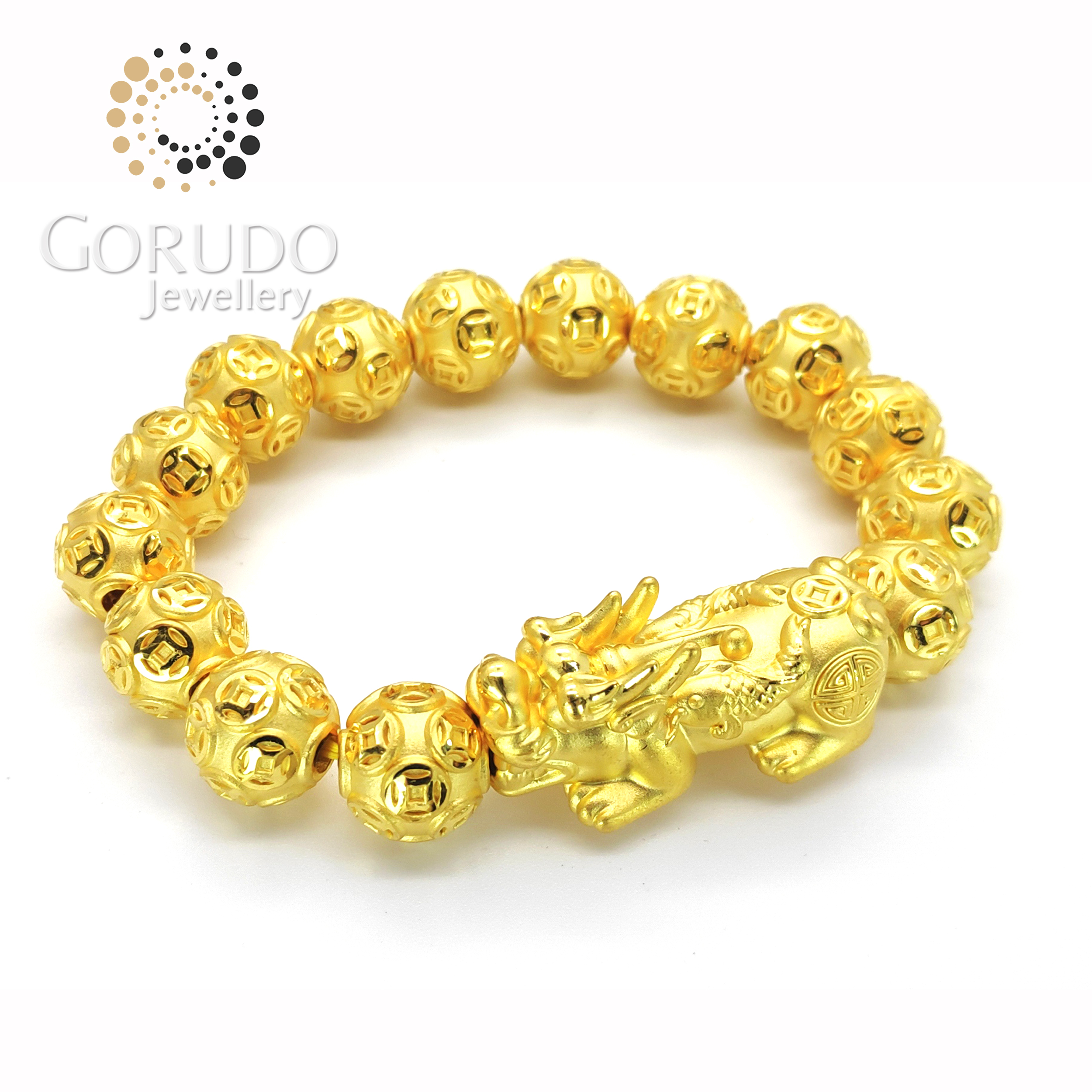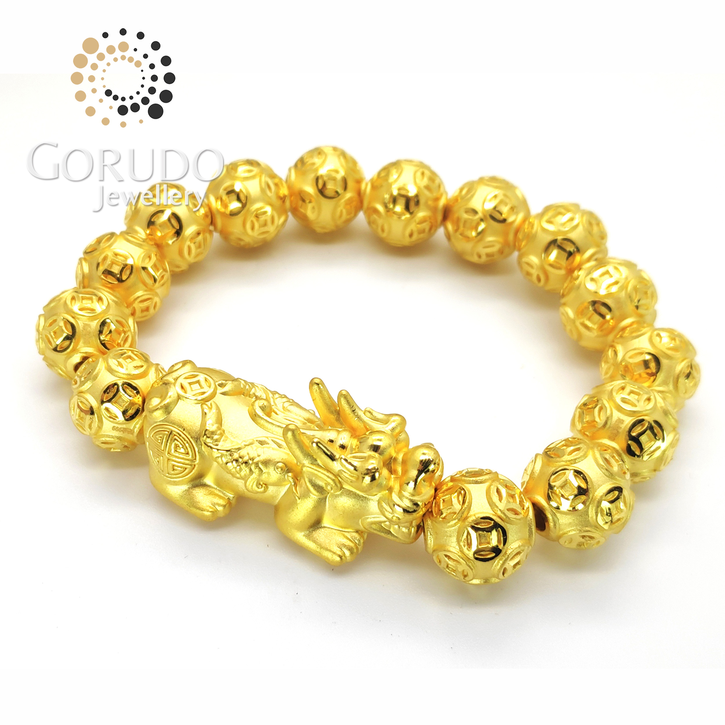 • 1 x Gorudo Jewellery Pure Gold 999 双鱼 Pixiu + 15 Auspicious Gold Coin Ball Charm Bracelet