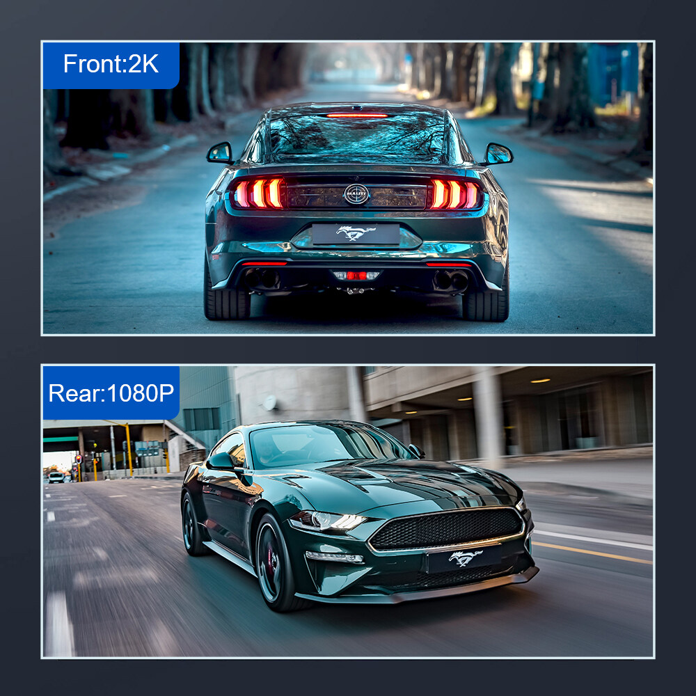 • **Basic Features: Front Cam 2K,Rear Cam 1080P,G-Sensor, Cycle Recording, Motion Detection, Time&Data Display, Wide Dynamic Range,GPS Navigation,Parking Assist