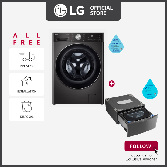 [Bulky] LG FV1411S2B 11KG, Front Load Washer, Black + LG Mini Washer TV2425NTWB 2.5kg Black Steel + Free Delivery + Free Installation + Free Disposal