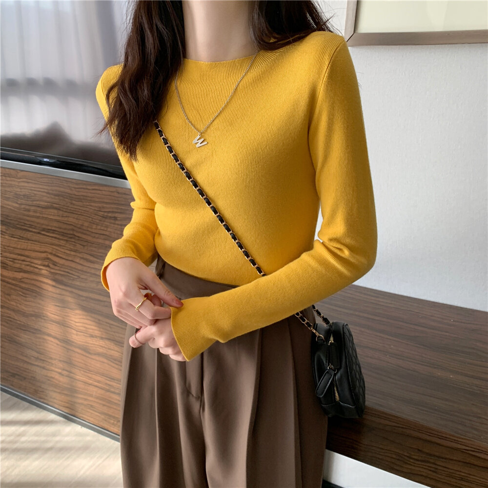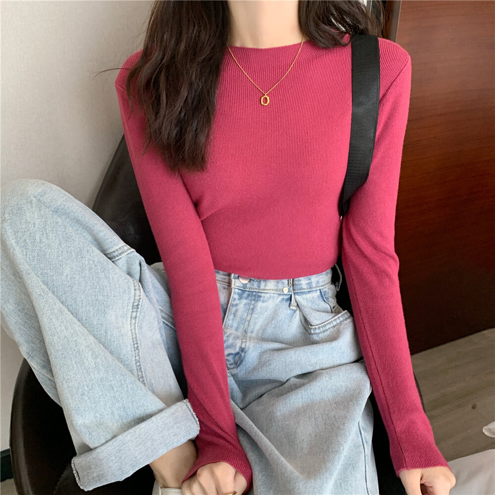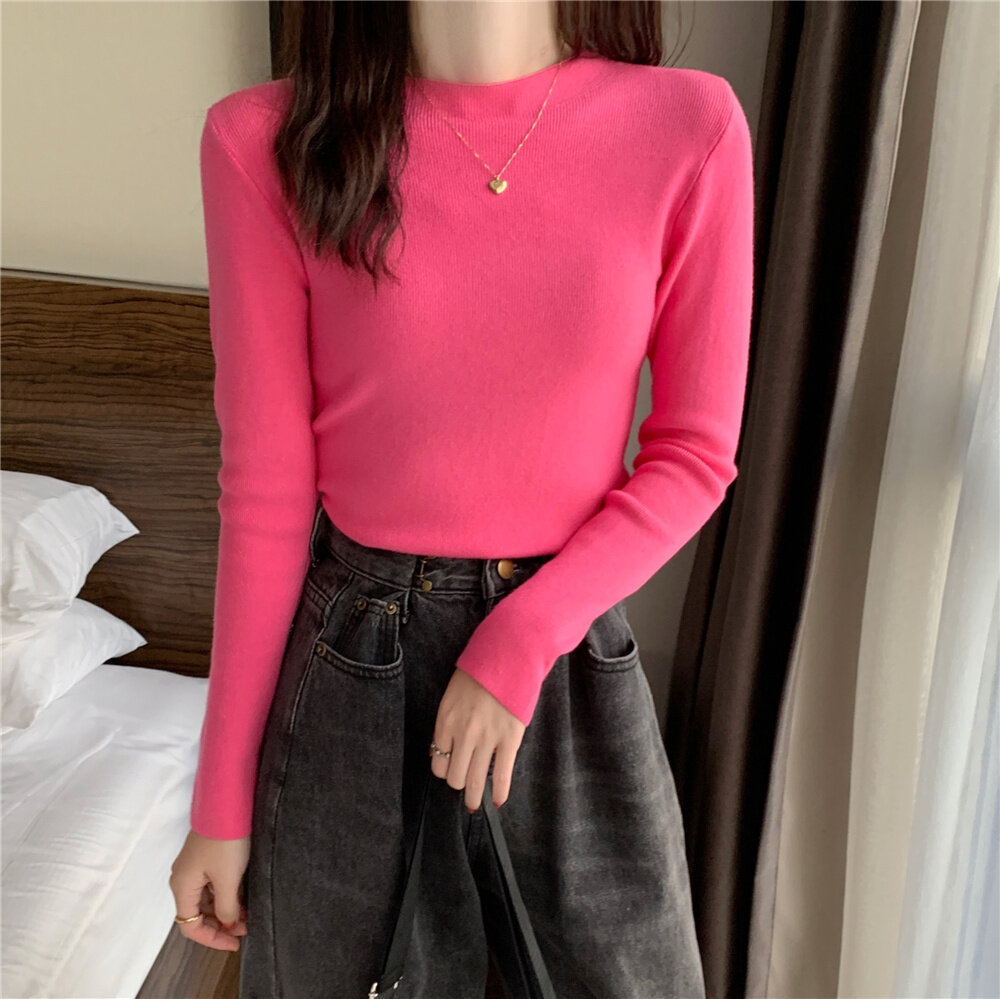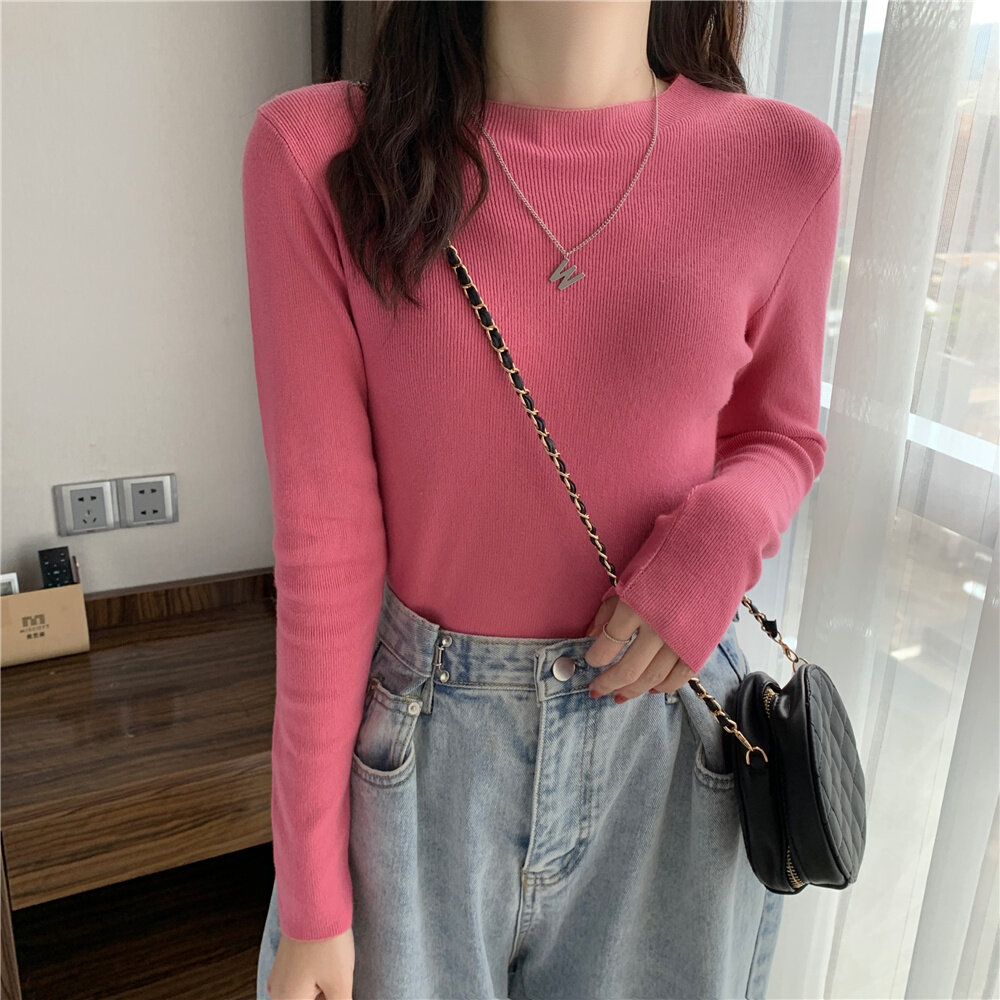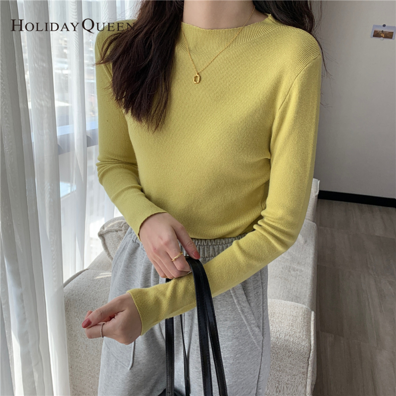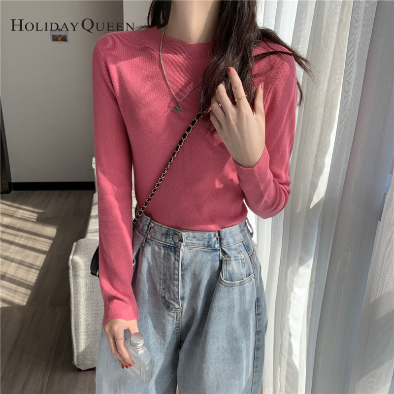 HolidayQueen 2022 Fall/Winter Full Color Basics All-match Solid Color Top Knit Sweater 15 Colors Free Shipping HQ1778
