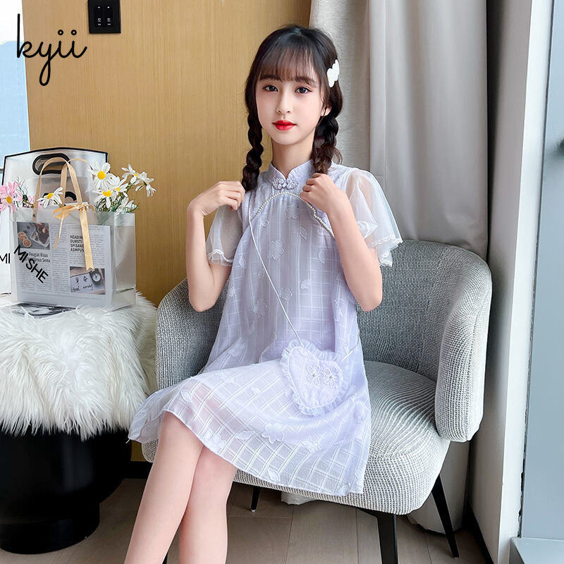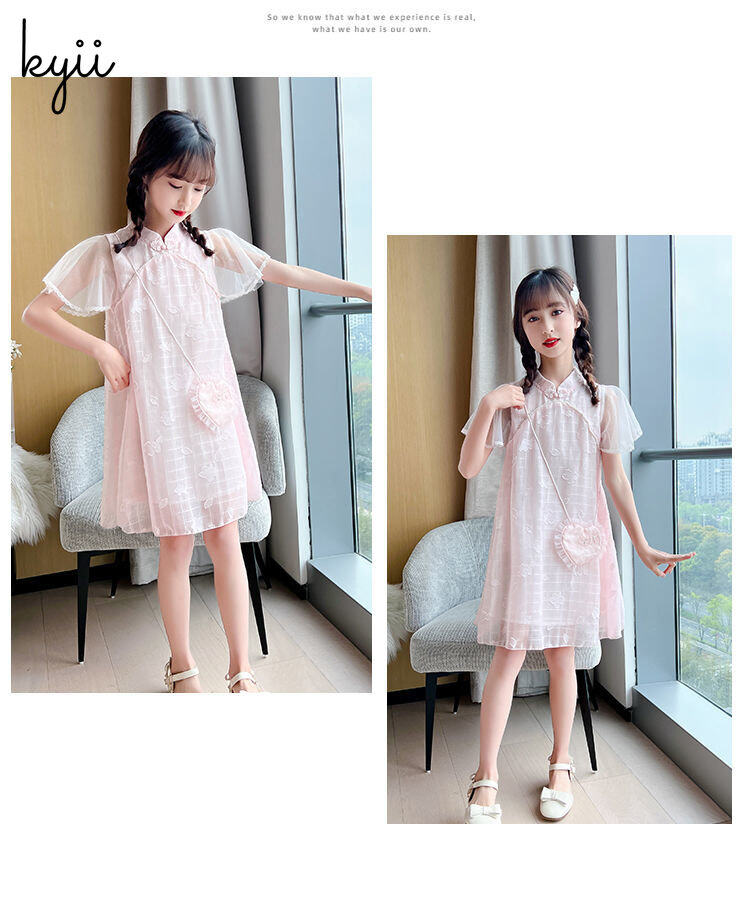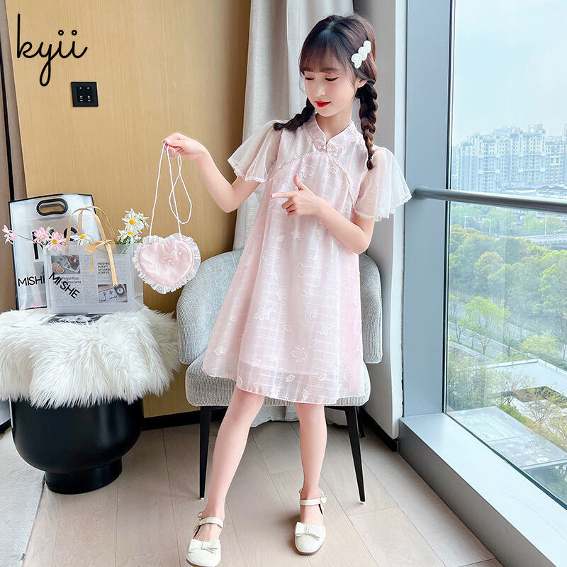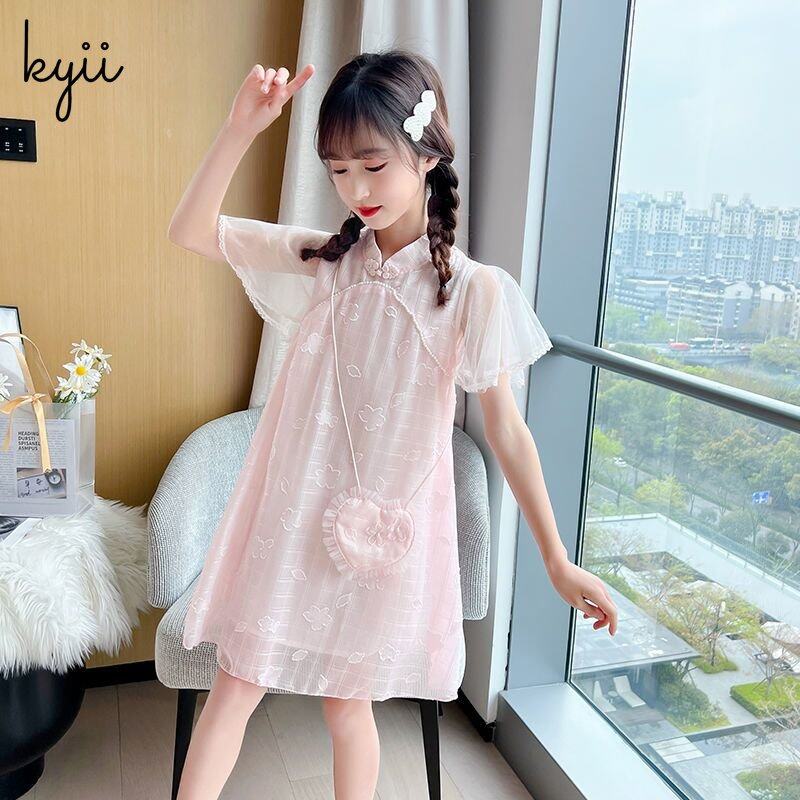 KYII Kids Girls Summer Round-neck Dress Short Sleeve Casual Loose Dress kyii0163