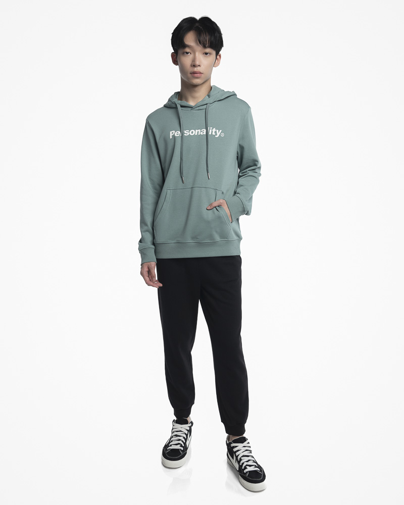 Regular Solid Coloured Long Sleeve Pullover Hoodie with Kangaroo Pockets at the front. Comes with Personality Slogan at the front. Made of cotton.