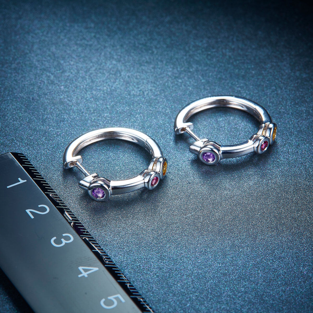 Hoop Huggie Earrings Real 925 Silver for Women Amethyst Citrine Garnet Natural Wedding Jewelry
