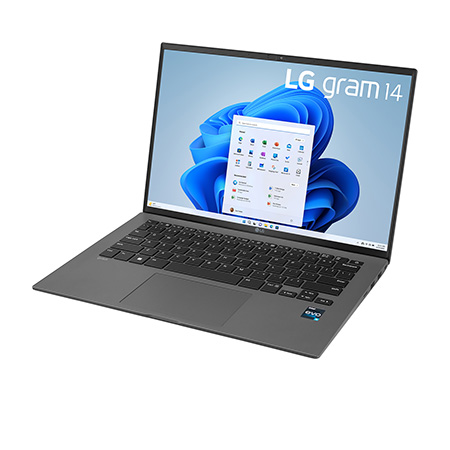 ● Being ultraLight at only 999g for a 14" Laptop with high-capacity battery of 72Wh, LG gram brings brilliant productivity and portability anywhere, anytime