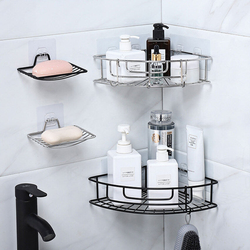 4. Two corner shower boxes will provide a large space for your bathroom or kitchen to store and organize your daily supplies. This bathroom shelf can hold up to 30 pounds of shower supplies and works great on smooth walls.