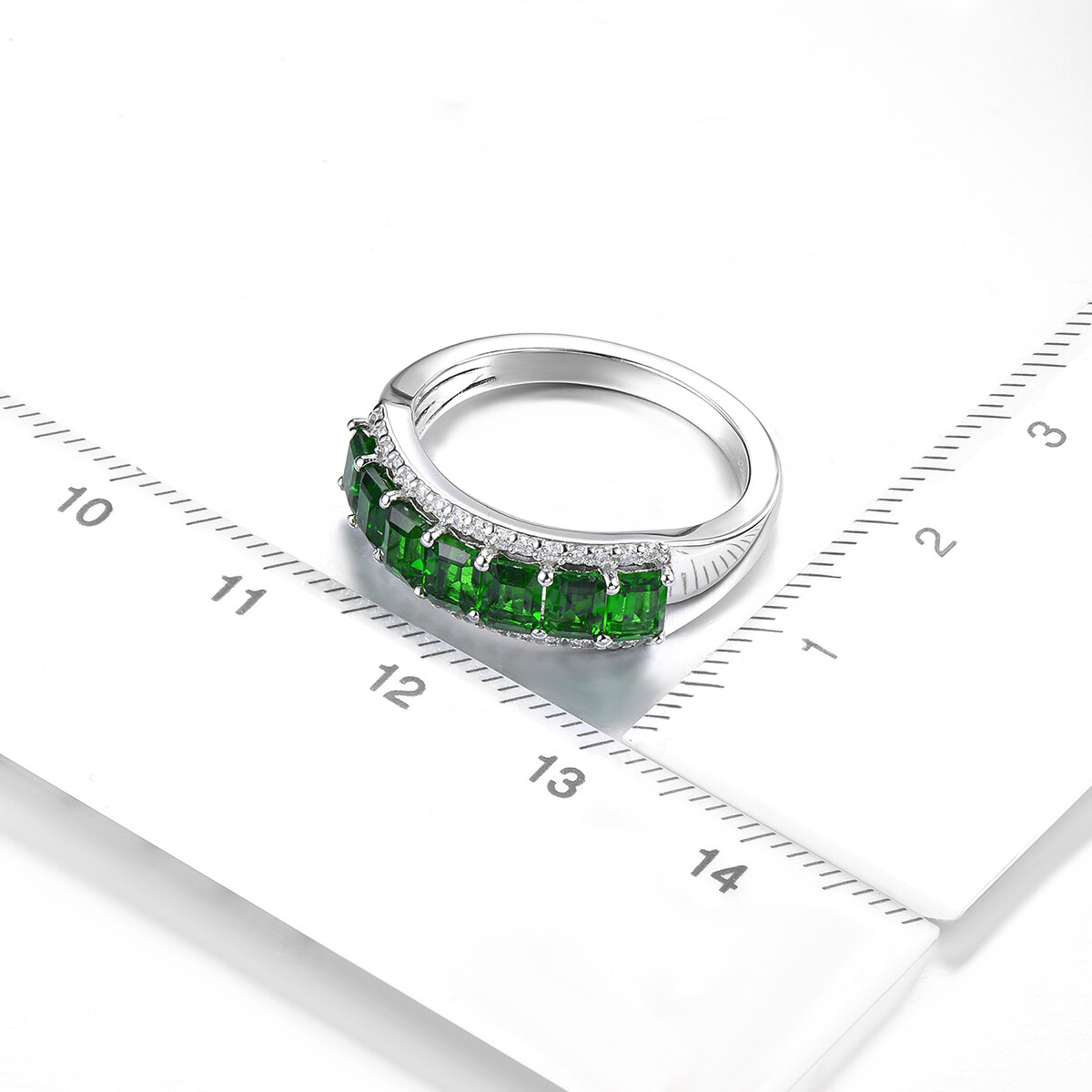 Lohaspie Jewelry Genuine 1.6 Carats Silver Ring For Women 925 Original Natural Chrome Diopside Ring Green Gemstone Birthstone Ring Jewelry Gift