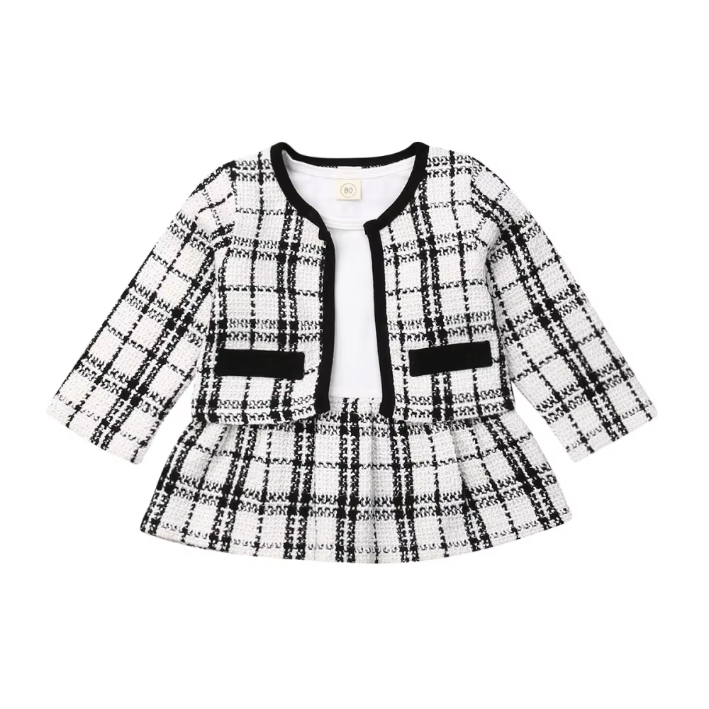 1 x Baby Girls Plaid Coat Tops+Tutu Dress
