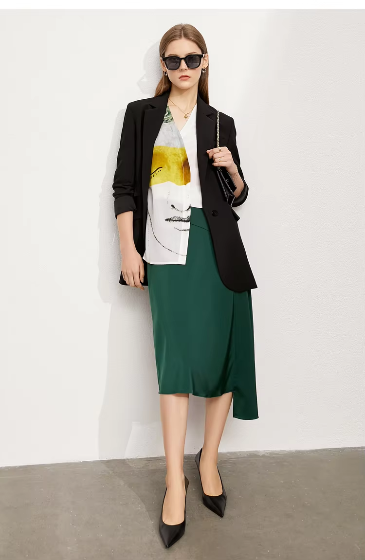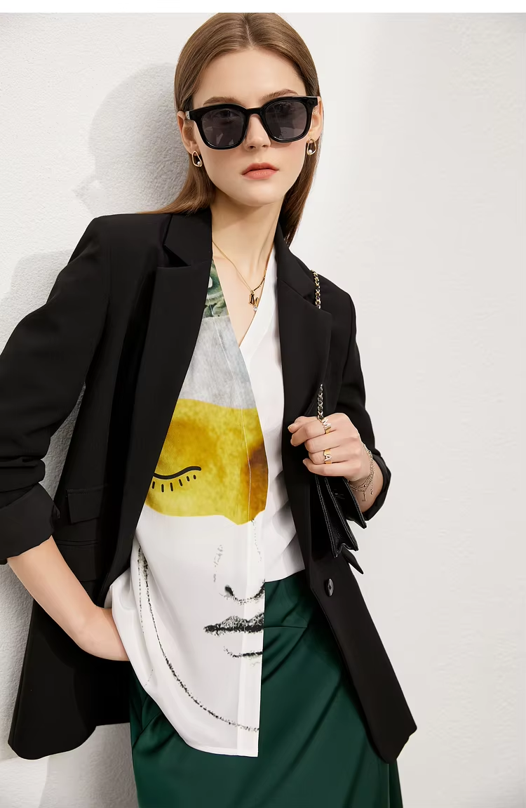 Amii Minimalism 2024 Women's Shirts Autumn New Artistic Printed V-neck Silk Female Long Sleeve Trendy Shirts & Blouses 12443092