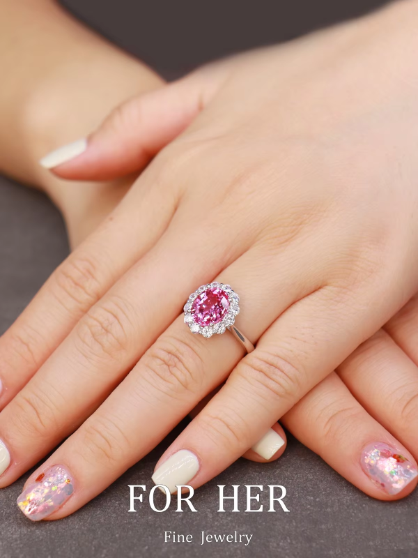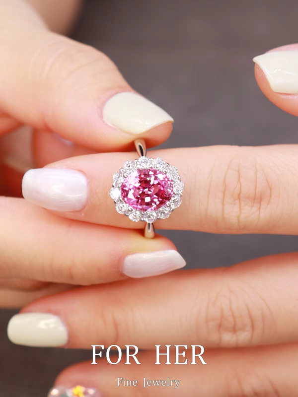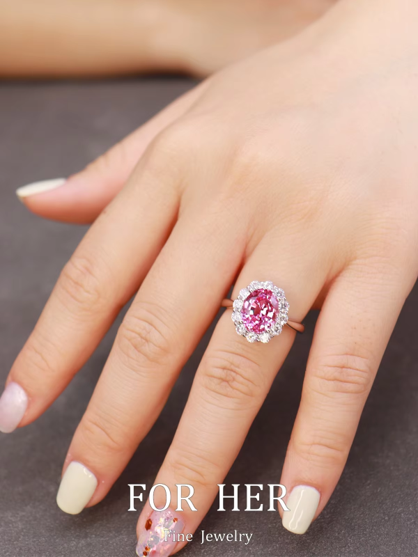 ForHer Design Fine Jewelry Custom Made Lab Grown Spinel Princess Ring Surround For S925 Sliver Gold Plated Oval Cutting Gem