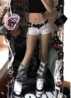 Gothic Y2k Lace Up Low Rise Denim Shorts Women 2000s Fashion Grunge Sexy Hot Pants Streetwear Harajuku American Retro Shorts
