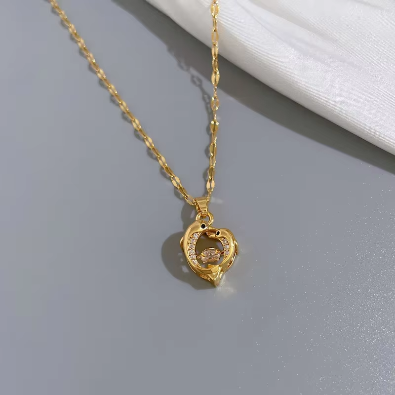 "I LOVE YOU" Exquisite Fashion Love Dolphin Zircon Necklace for Women Smart Heart Dolphin Animal Jewelry Party Birthday Gift