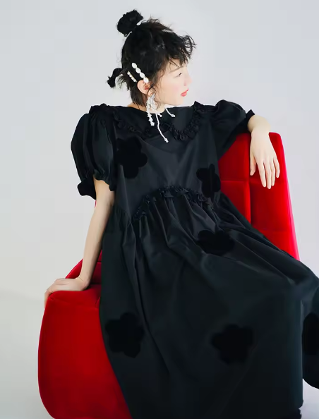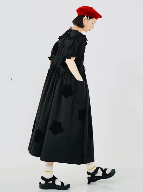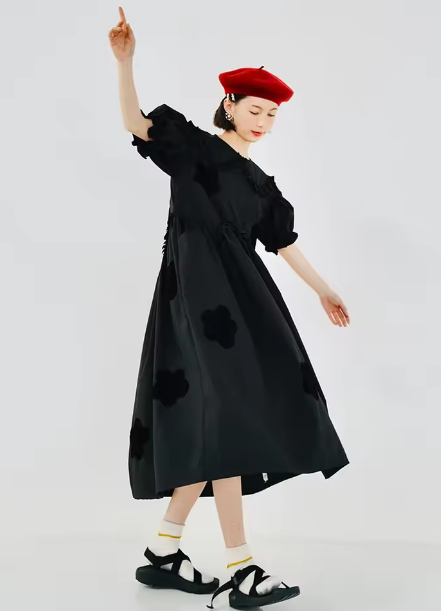 imakokoni 2022 Original Summer Pure Cotton Black Dress Cherry Blossom Dress Simple Girly Long Skirt for women white dress 223588