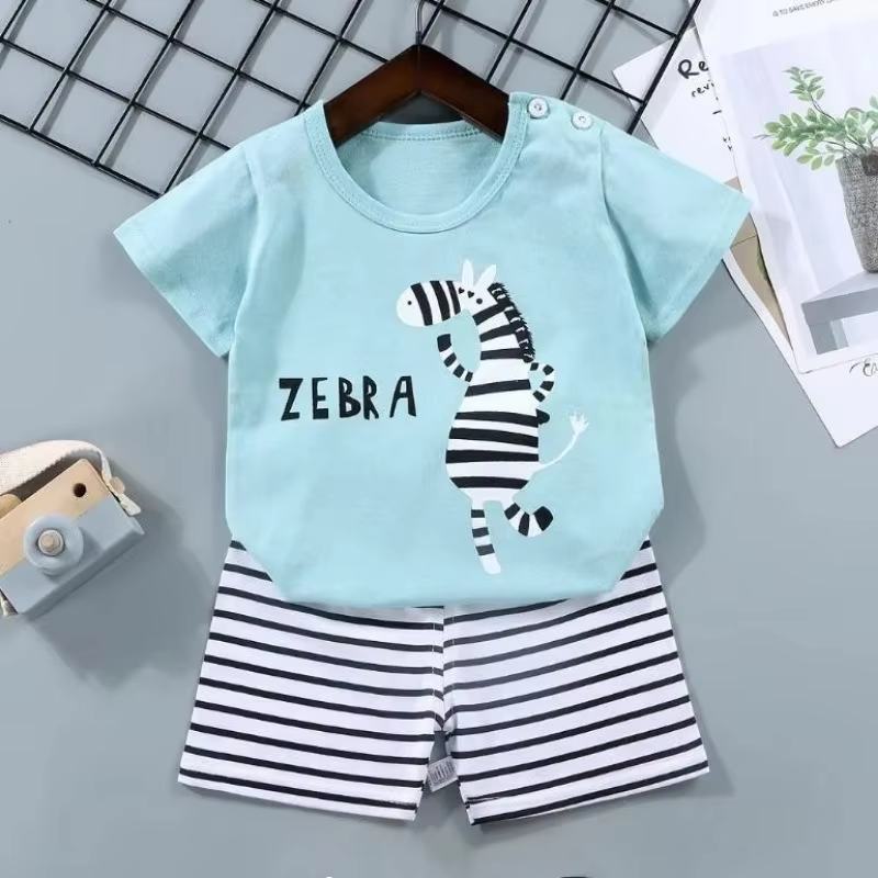 Kid Boy Summer Short Sleeves Tees+Stripe Shorts 2-piece Clothes Set Cartoon Zebra Print Soft Cotton Sports Casual Suit 1-6 Years