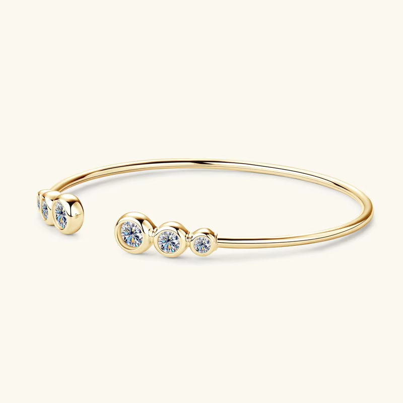 Lnngy Adjustable Cuff Bracelet Original and Pure 925 Sterling Silver Bezel Moissanite Bracelets For Women Opening Wrist Jewelry