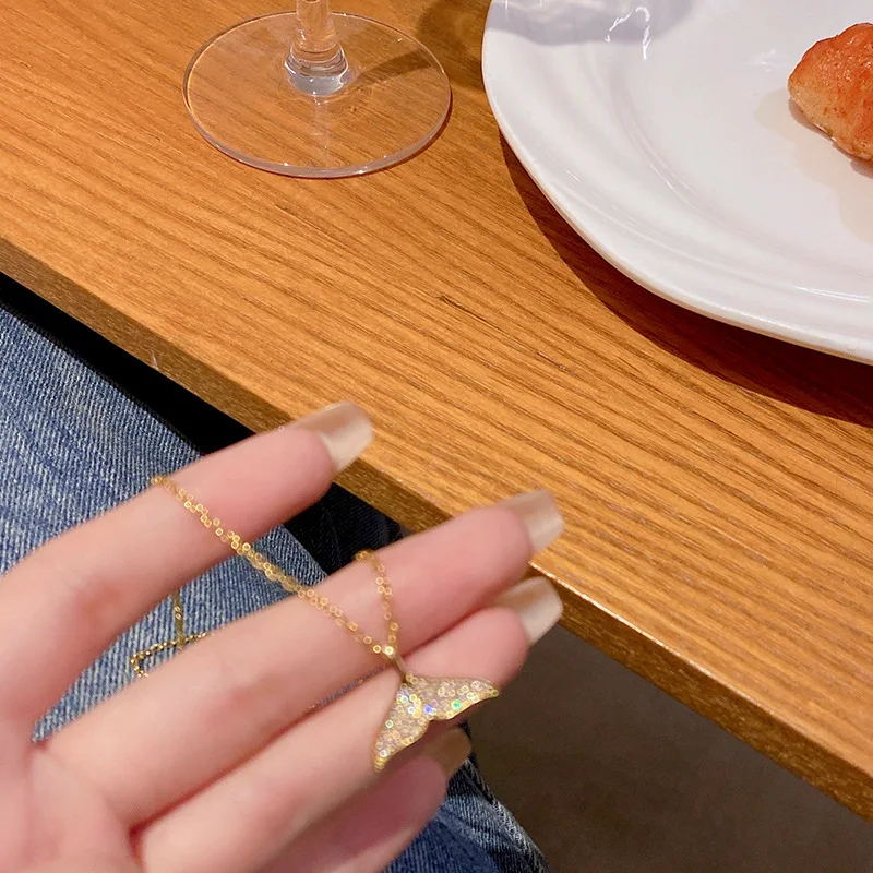 New Fashion Trend Stainless Steel Elegant Delicate Light Luxury Zircon Mermaid Necklace Women Jewelry Wedding Party Premium Gift