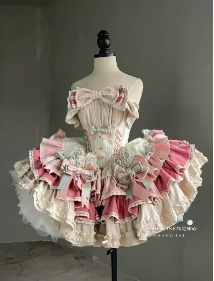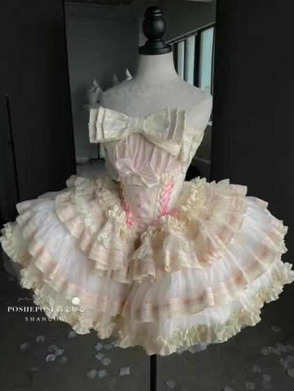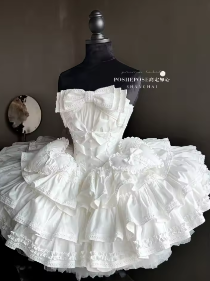 New Girls Birthday Lolita Dress 2024 Spring and Summer Women's Tube Top Satin Bowknot Slim Pettiskirt Short Mini Party Dress