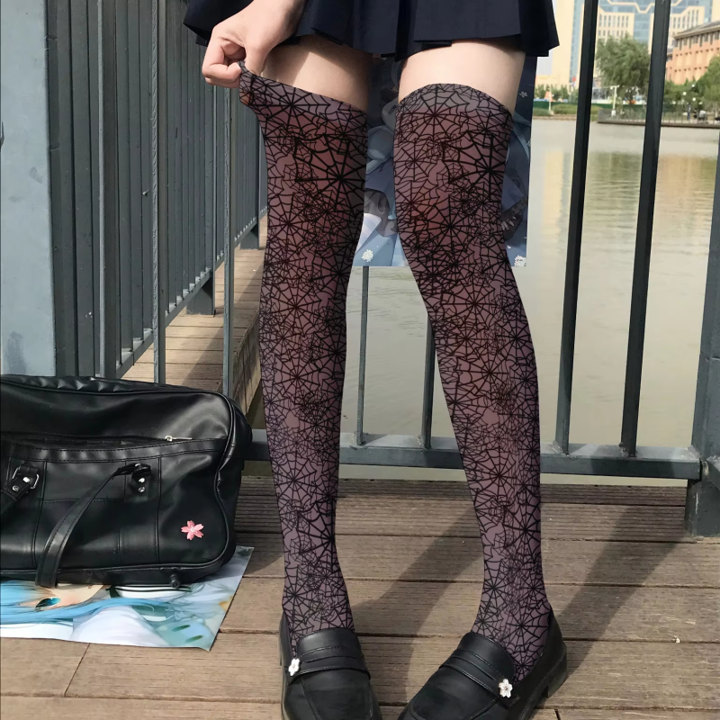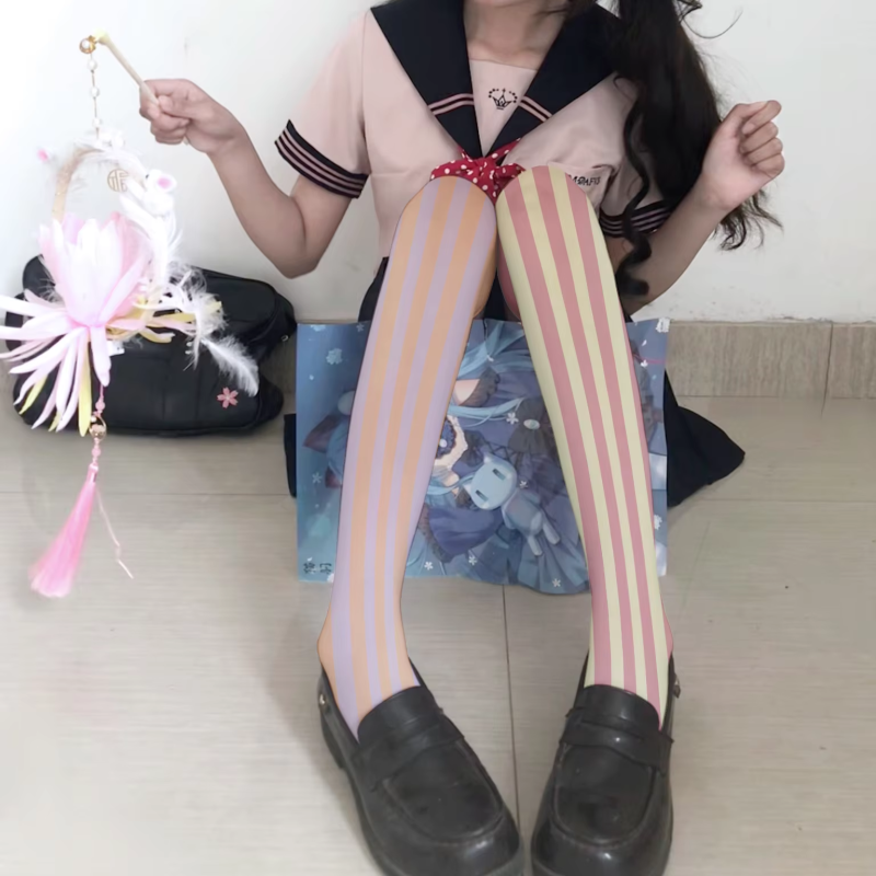 New hot fashion ladies stockings 3D printed striped cartoon pink stockings Harajuku Kawaii sweet Lolita JK thigh stockings