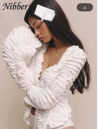 Nibber Ripped Chic Crop Tops Women Autumn Elegant Shirring Square Collar Elegant Cross Ruched Full Sleeve Solid Streetwear Tees