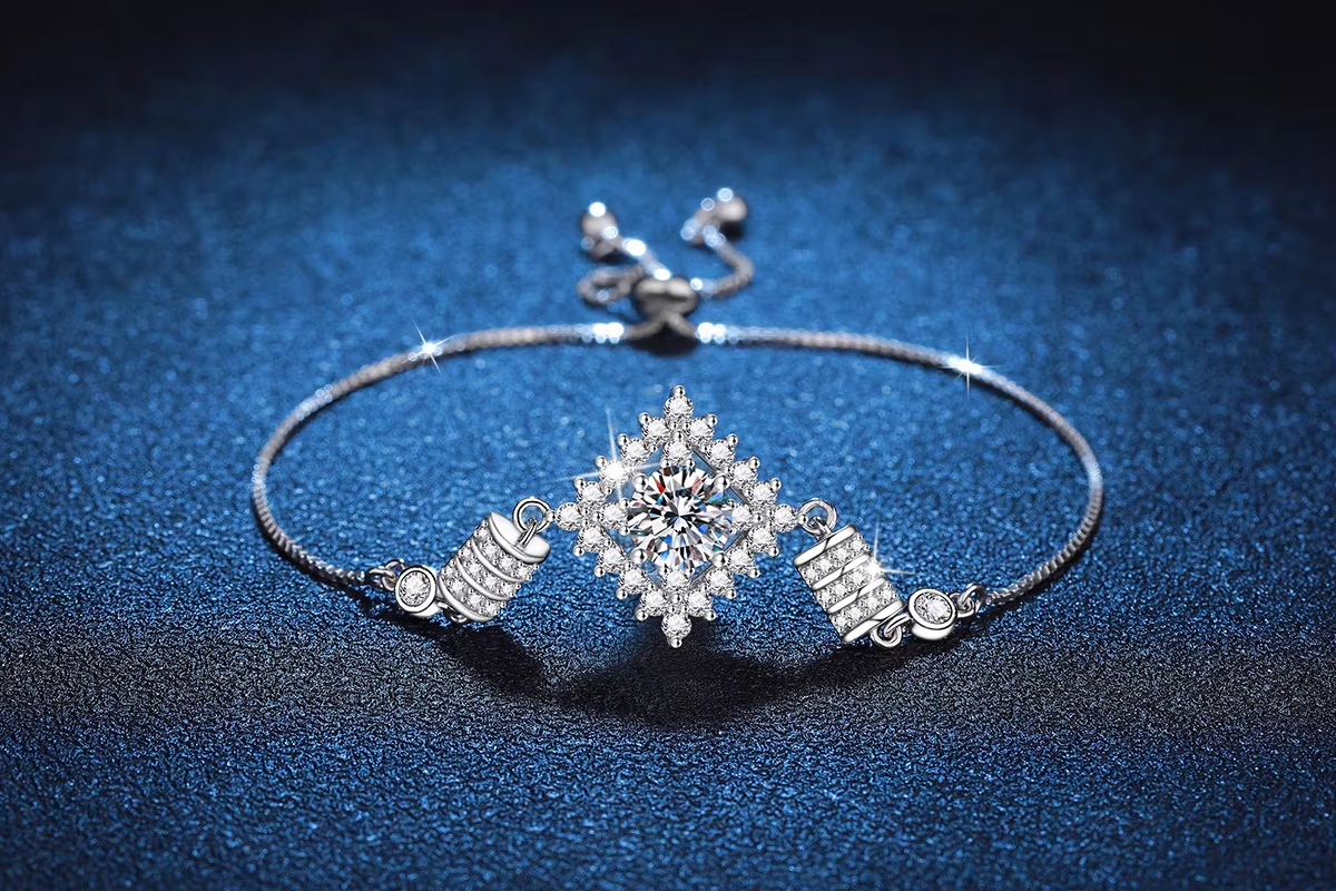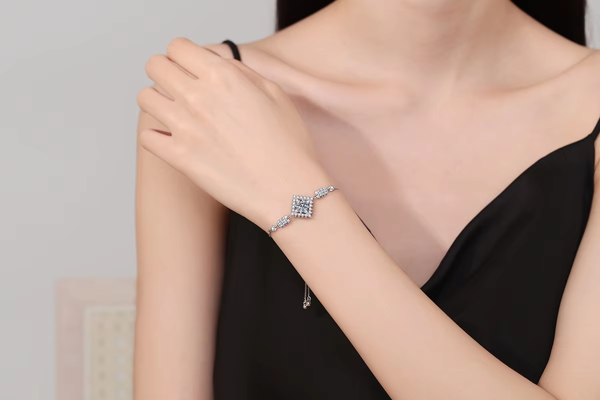 PT950 Platinum Bracelet Women's Moissanite Handkerchief Square Bag High-end 1 Carat Moissanite Bracelet Adjustable Bracelet